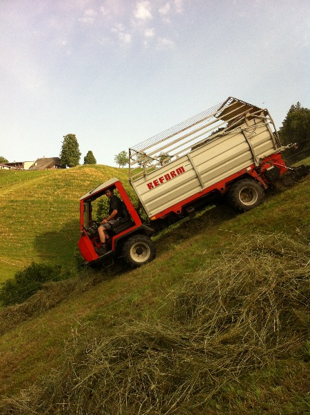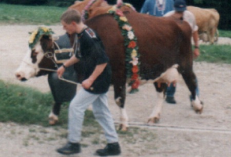 Auf unserem Hof betreiben wir hauptsächlich Milchwirtschaft, mit 16 Kühen, 4 Gusti, 6 Kälber für die Nachzucht und ca. 3 Mastkälber pro Jahr.